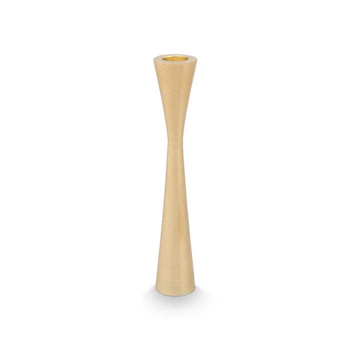 Deze stijlvolle kandelaar met een ronde, gouden vorm is een prachtige toevoeging aan elke kamer. Het glanzende metaal geeft een luxueuze uitstraling, waardoor het een sfeervolle en warme verlichting creëert voor één enkele kaars. Met een hoogte van 20 cm is deze kandelaar een echte blikvanger op elke tafel of plank.
