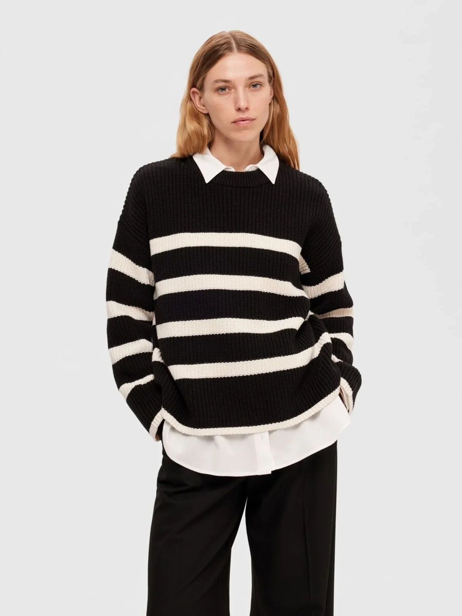 SLFMANJA LS O-NECK STRIPE NOOSBlack SNOW WHITE