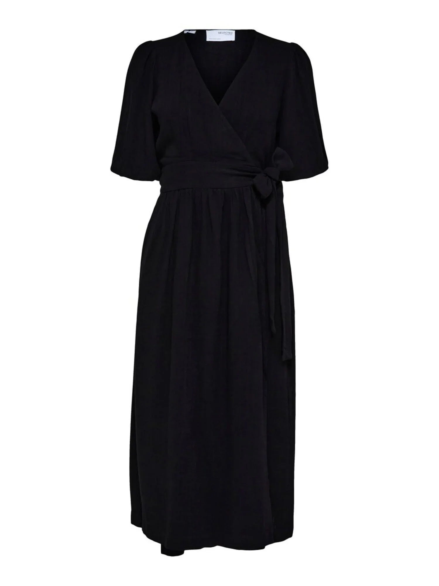 SLFEVITA 2/4 MIDI WRAP DRESS BBlack