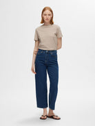 SLFJESSY SS O-NECK STRIPE TEE EXPure Cashmere Bright white