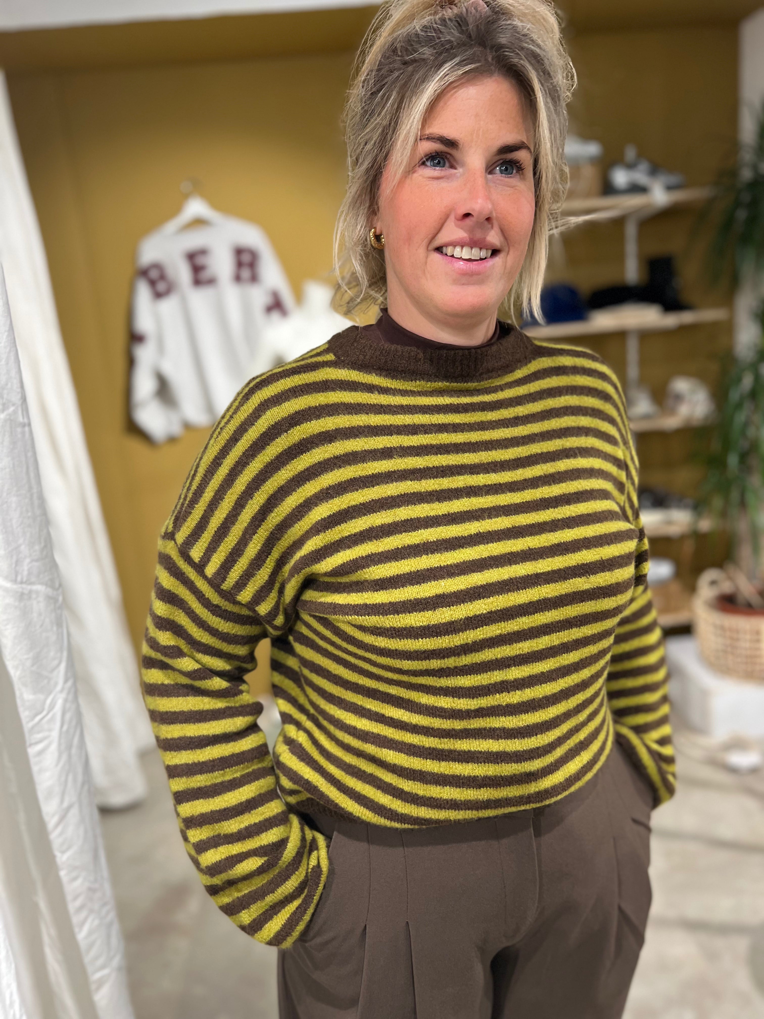 Trui knit streep Brown-Green