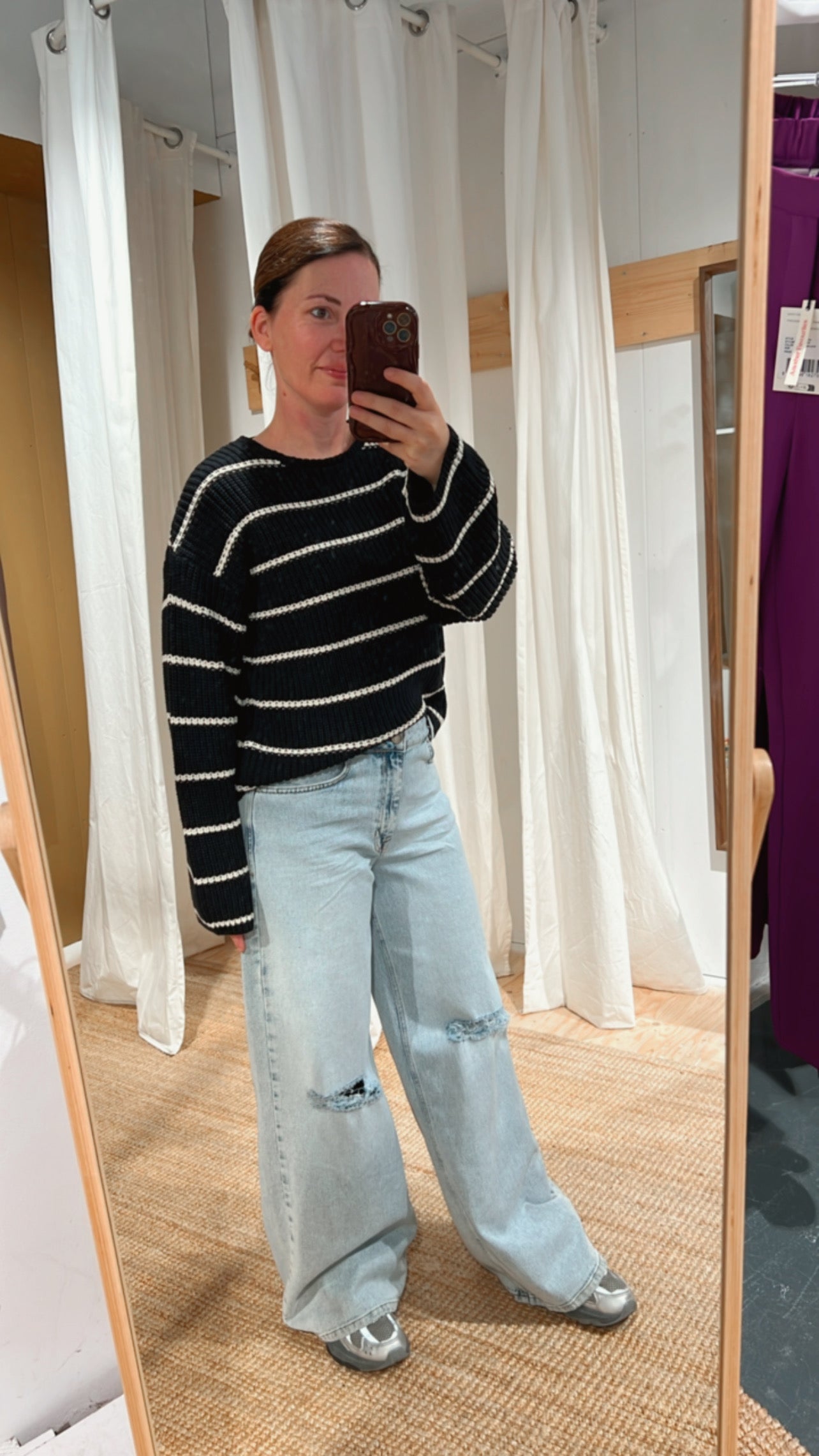 SLFMANJA LS O-NECK STRIPE NOOSBlack SNOW WHITE