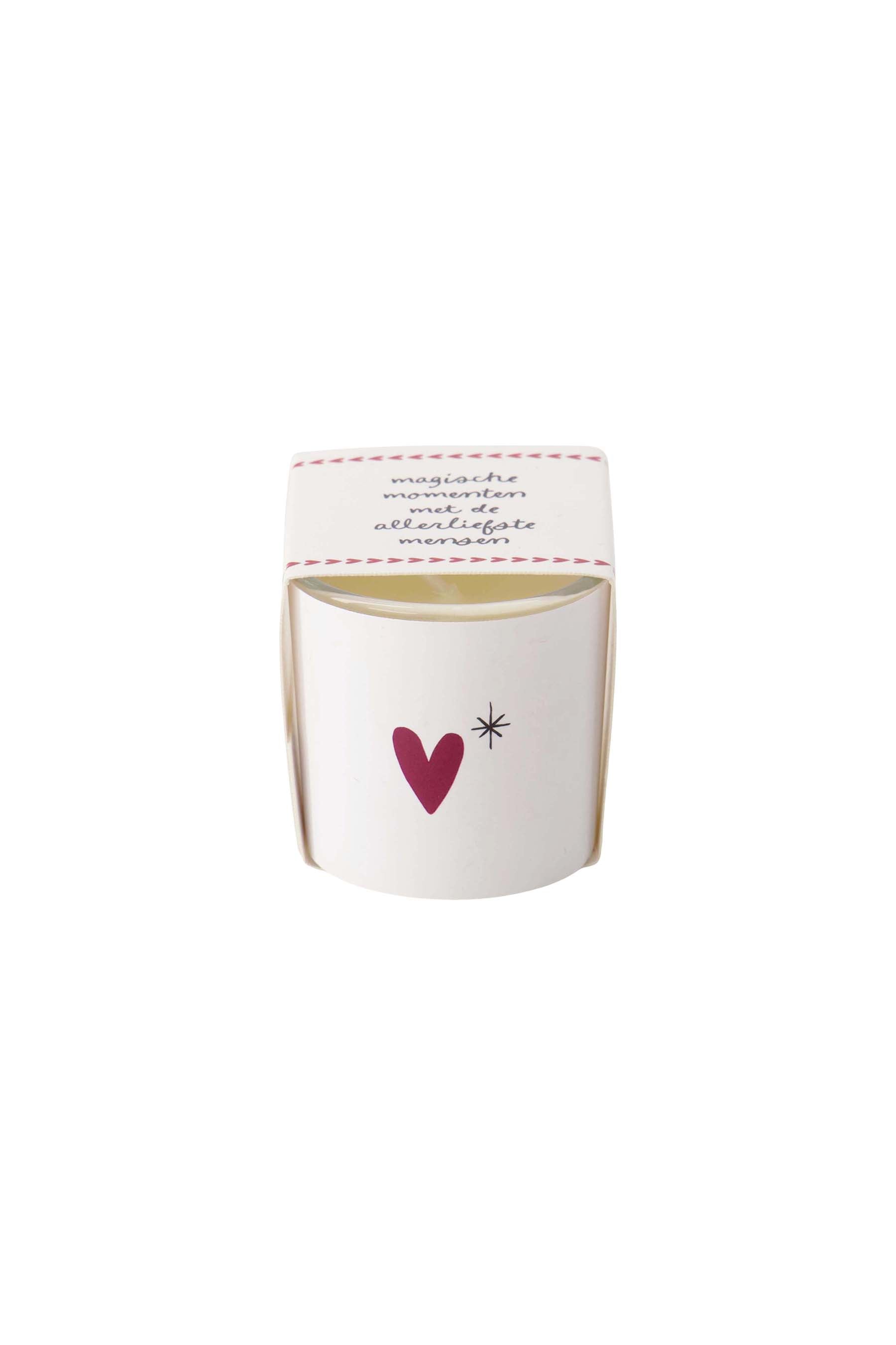 Geurkaarsje in wikkel hartje wit/rood
