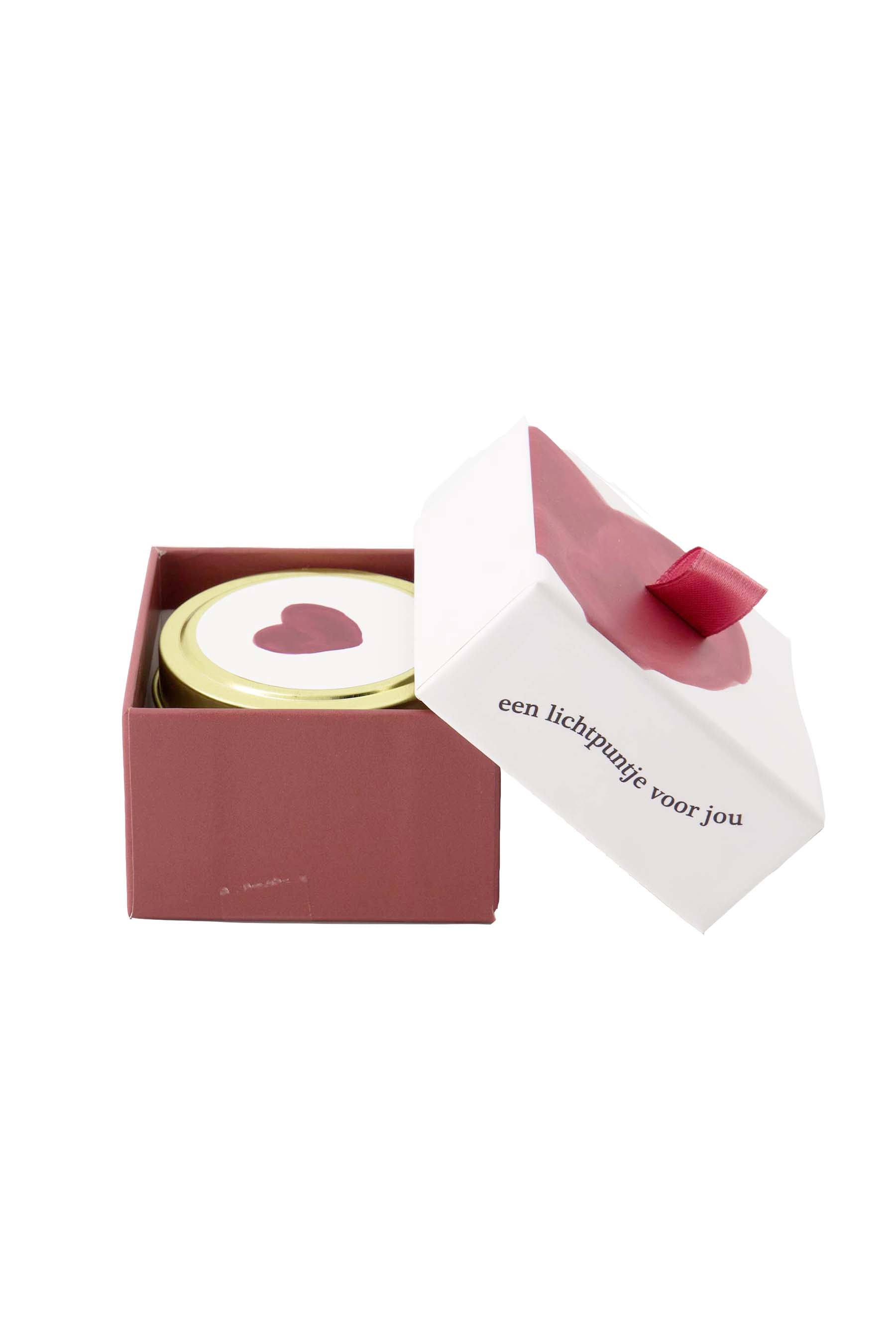 Geurkaarsje tinnen in doosje lichtpuntje wit/rood