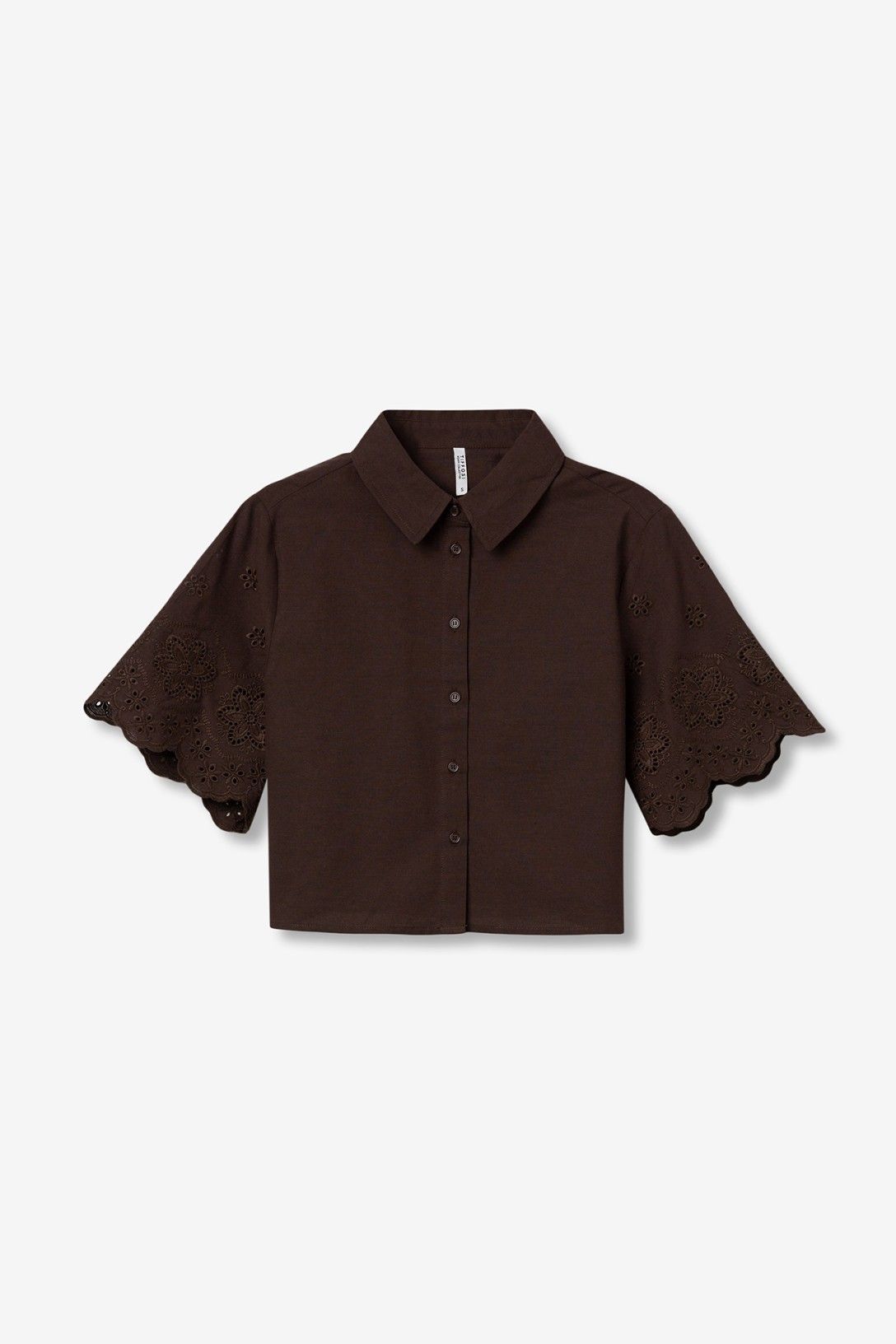 Deze elegante blouse in een heerlijk zachte, chocoladebruine kleur is een stijlvolle toevoeging aan je garderobe. Met zijn cropped silhouet is hij eenvoudig te combineren met jeans, rokken of shorts. Gemaakt van 100% katoen biedt deze blouse comfort en duurzaamheid voor elke gelegenheid.