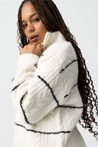 Trui met lange mouwen en hoge hals en metalen rits. Gebreid met structuur. Horizontale streepprint. Geribde manchetten en zoom.