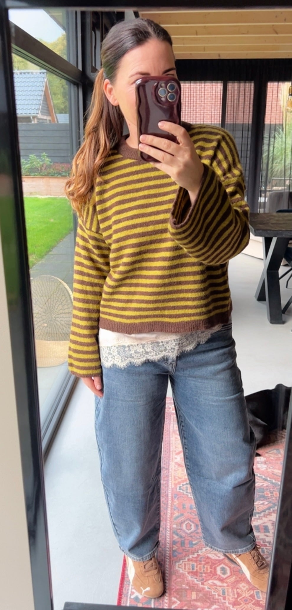 Trui knit streep Brown-Green