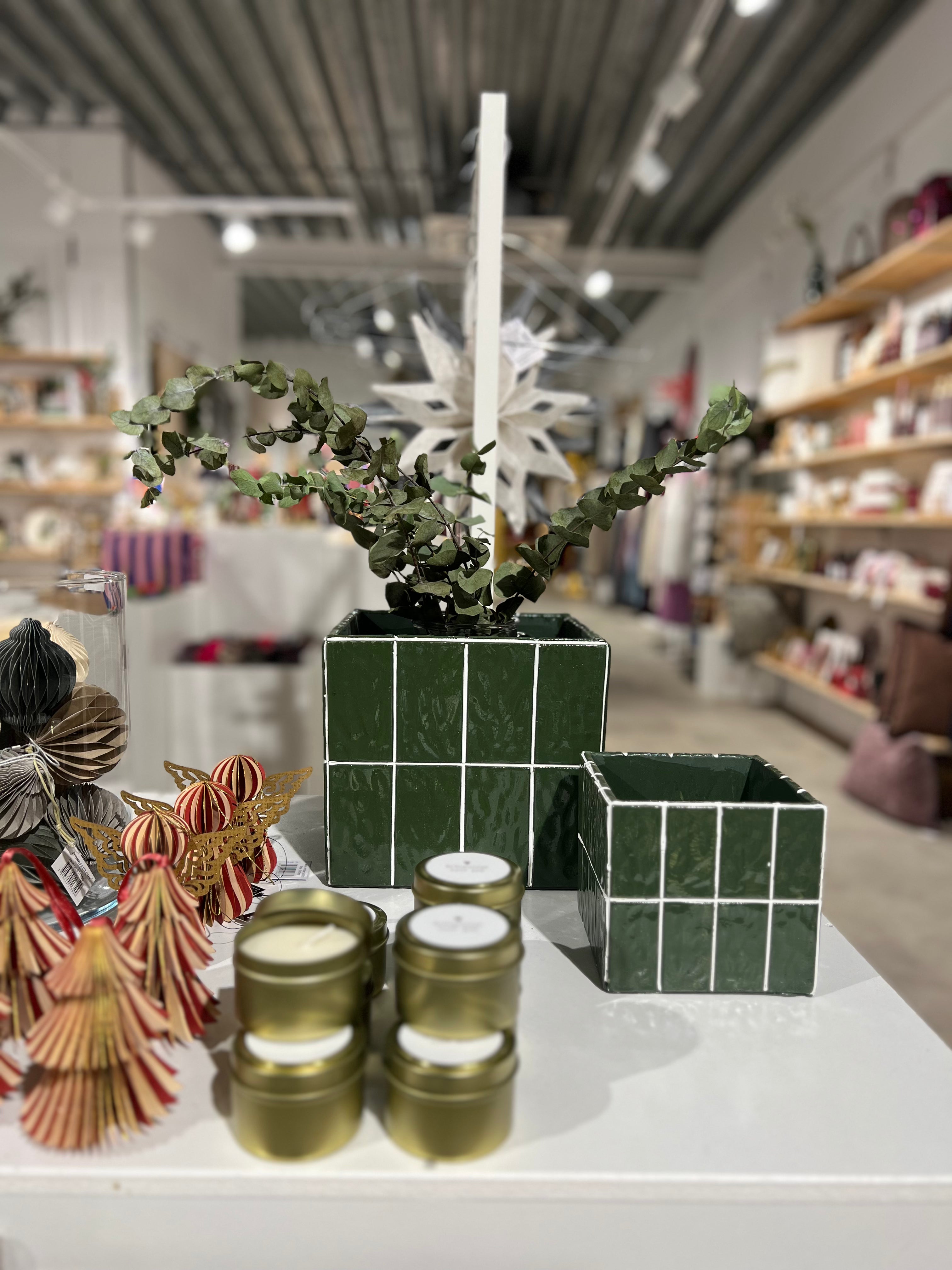 Aardewerk bloempot groen streep large moza