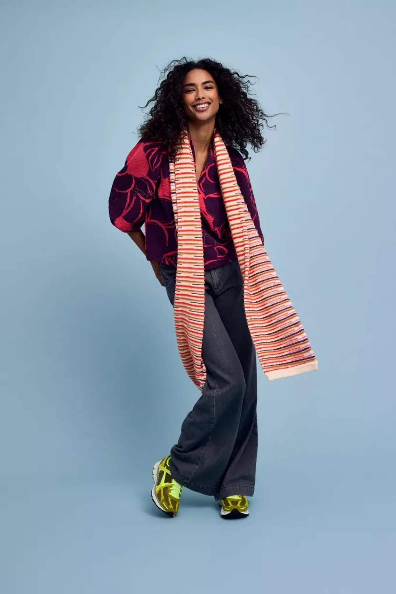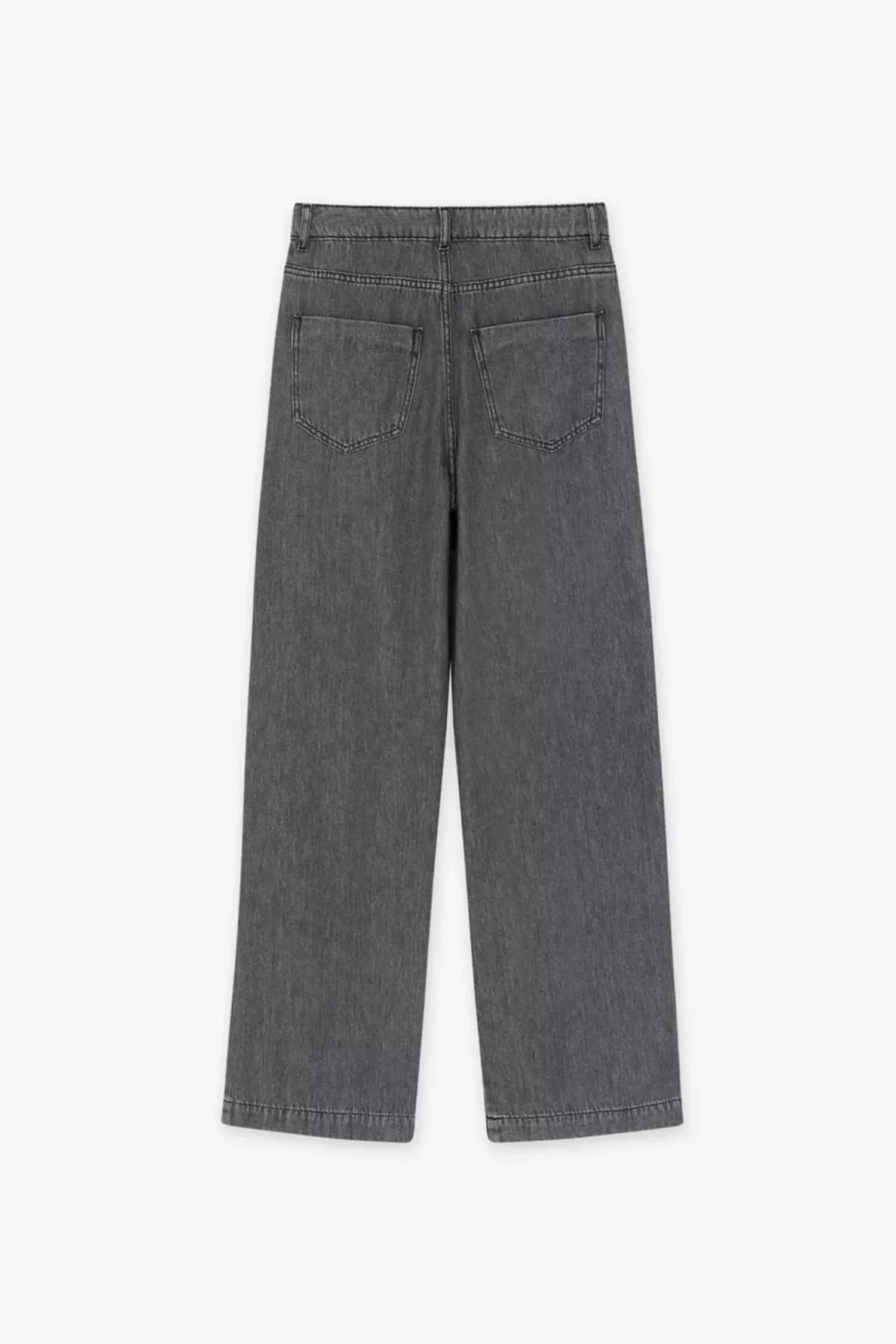 Deze grijze CKS denim heeft wijde broekspijpen en een hoge taille.