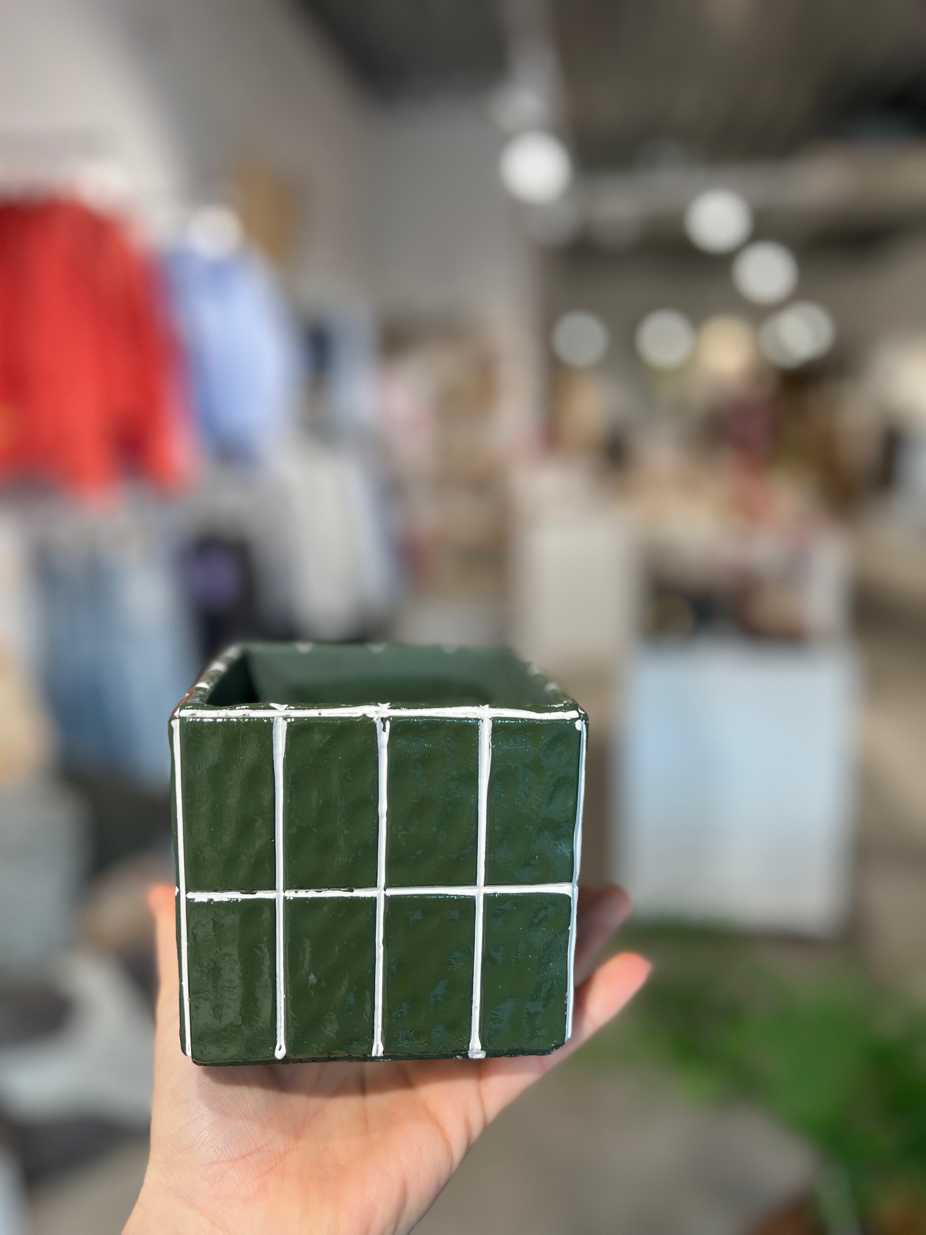 Voeg een klein, maar fijn accent toe aan je interieur met deze aardewerken bloempot in een moderne, gestreepte groene kleur. Perfect voor het opfleuren van je woon- of werkplek. De compacte maat maakt deze pot uitermate geschikt voor kantoor, hal of in de vensterbank.