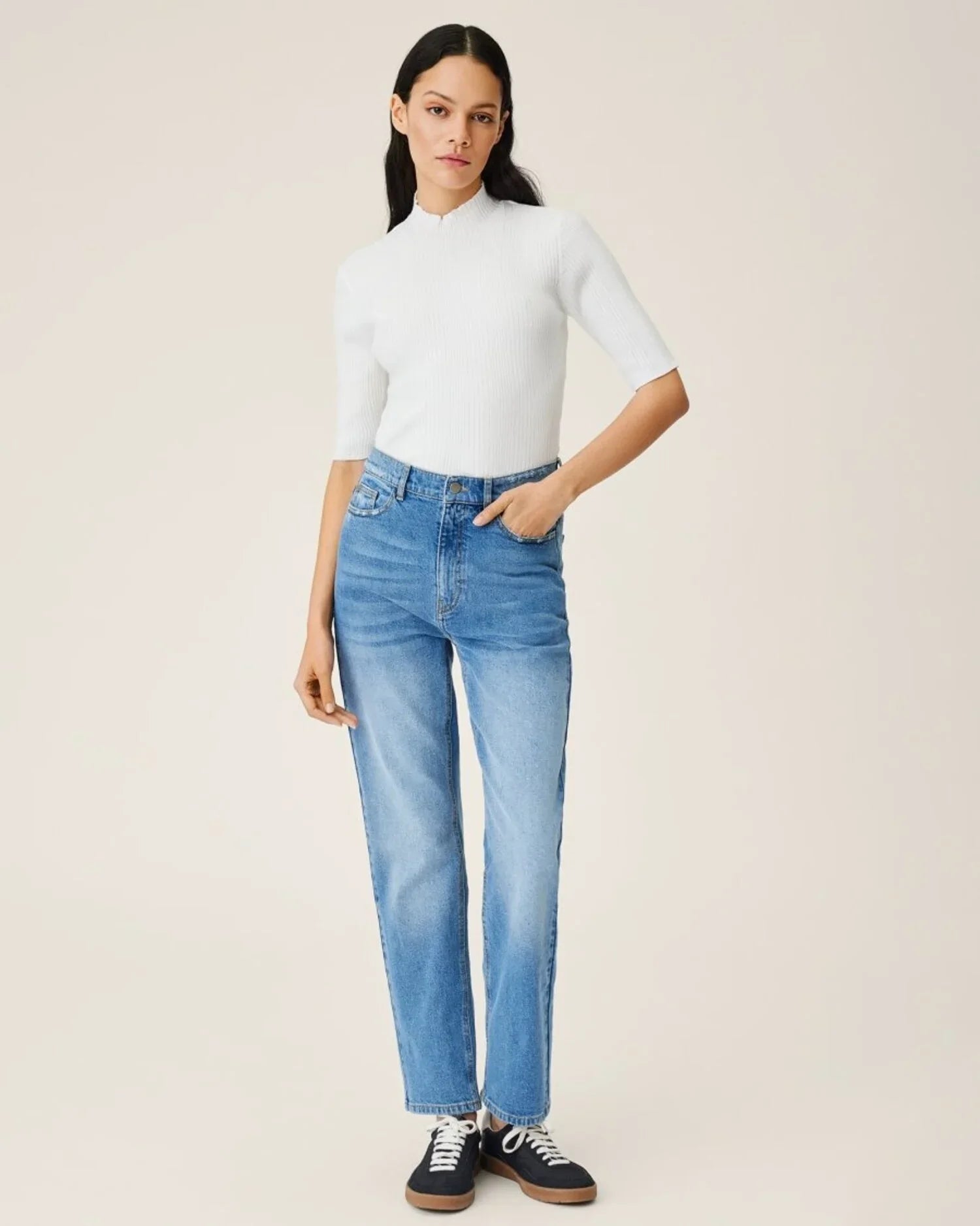 Draag deze jeans met een bijpassend blazerjack voor een stijlvolle, elegante look. Shop nu en ontdek meer van onze beste nieuwe denim collectie voor jouw perfecte garderobe.